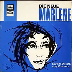 Die neue Marlene is a studio album by Marlene Dietrich, released by Electrola in 1965.[3] It was issued in the UK on His Master's Voice and released in the US by Capitol Records under the title Marlene — Songs in German by the Inimitable Dietrich.[4] The album peaked at #34 in the German charts.[5] The song "Die Antwort weiß ganz allein der Wind" was released as a single with "Sag mir, wo die Blumen sind" as its B-side.[6]