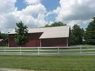 Dierdorff Farmstead is a historic home and farm located in Elkhart Township, Elkhart County, Indiana. The house was built in 1892, and is a two-story, frame dwelling with Queen Anne style design elements. It has a wraparound porch with Eastlake movement details and a patterned slate gable roof. The property also includes the contributing English barn (c. 1854), summer kitchen (1892), windmill (c. 1892), and poultry shed (c. 1920).[2]: 3–4