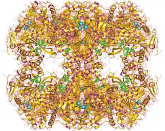 • Wynn RM, Davie JR, Zhi W, Cox RP, Chuang DT (1994). "In vitro reconstitution of the 24-meric E2 inner core of bovine mitochondrial branched-chain alpha-keto acid dehydrogenase complex: requirement for chaperonins GroEL and GroES". Biochemistry. 33 (30): 8962–8. doi:10.1021/bi00196a014. PMID 7913832.