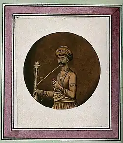 The Nawāb of Farrukhabad, Muzaffar Jang, smoking a hookah