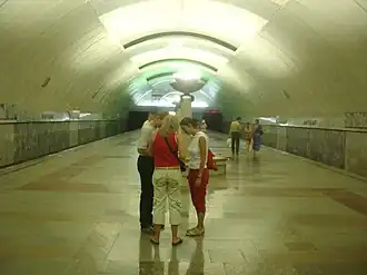 - December 1987 — after passing several hundred meters under the city pond, the builders made a connection in the left running tunnel to "Ploschad 1905 Goda" station.[1]