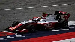 Beganovic would finish the races seventh and sixth in Monaco, although a red flag in qualifying hampered a chance for him to improve.[83] He then had a challenging Barcelona weekend, where he managed only two eighth-places in the races.[84] In Austria, Beganovic qualified fifth, but a first-lap spin in the sprint race caused him to fall to the back, eventually finishing 15th.[85] In the feature race, he moved into second place in the beginning of the race, staying within DRS range of Luke Browning for the majority of the race. However, teammate Minì soon passed him after the Swede lost DRS, forcing Beganovic to settle with third place.[86][87] An unlucky timing in qualifying Silverstone confined Beganovic to 19th for both races, and he was unable to recover from there, forcing him to cope with his first non-scoring weekend of the season.[88] Starting on reverse pole for the Budapest sprint race, Beganovic lost out to Nikita Bedrin at the start. Despite fighting with significant tyre wear, he settled for third place after an unsuccessful overtake on Bedrin caused him to lose another position.[89][90] He finished ninth in the feature race.[91]