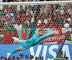 On 21 May 2024, he was selected in the 26-man squad for the UEFA Euro 2024.[76] In the round of 16 match against Slovenia, he was awarded player of the match, as he cleared a one-to-one chance from Benjamin Šeško in the extra time, before saving all three penalties in the shootout, becoming the first ever goalkeeper in the European Championship to do so, securing his country's qualification to the quarter-finals.[77][78] Costa recalled the match by saying it was "the best match of my life, the match in which I managed to help my team the most. I had to follow my instinct, that's what I felt. I'm very happy and very excited to help the team so much".[79][80] Portugal were eliminated in the quarter-finals to France after losing 5–3 in another penalty shootout, with Costa failing to save any penalty.[81]
