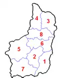 Prior to 2002, Rwanda was composed of prefectures, subprefectures (which were sometimes called "districts")[1] and 154 communes (Kinyarwanda: imijyi, sing. umujyi).[2][3] In 2002, communes were replaced by two kinds of divisions called districts and municipalities (Kinyarwanda: akarere and umujyi).[2] In 2006, the number of districts was reduced from 106 to 30.[2]