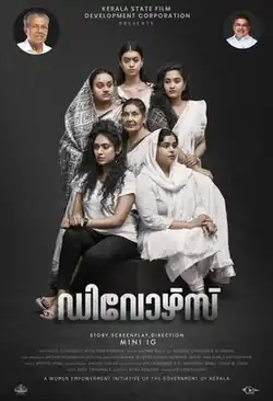 Divorce is a 2023 Indian Malayalam-language film written and directed by Mini IG which is about the process of Divorce deconstructing dynamics of families through social, psychological and economic aspects[2] starring Chandhunadh, Santhosh Keezhattoor, P. Sreekumar, Fara Shibla[3] etc. It is one of the first Malayalam movie selected by Government of Kerala for funding through Kerala State Film Development Corporation for uplifting works of women directors.[4][5] It is declared tax free by Govt. of Kerala.[6] The movie got censor certificate in 2020 and was previewed in Kalabhavan theatre in 2021.[7]
