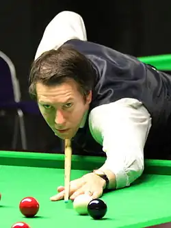 Dale qualified for the World Championship courtesy of defeating Andrew Higginson in the final round of qualifying.[23] He faced Mark Davis in the first round and beat him 10–5, marking his first win at the Crucible since 2000.[24] Dale followed this up with a 13–4 win over Michael Wasley (who had beaten pre-tournament second favourite Ding Junhui in his opening match) to reach the quarter-finals for the second time, 14 years after the first.[25] Dale played Barry Hawkins and trailed 11–5 after the second session, but then amazingly won seven frames in a row to be just one away from reaching the semi-finals and matching the biggest comeback at this stage ever at the Crucible. However, Hawkins won the two frames he required without giving Dale a chance to beat him 13–12. Later, Dale revealed that he had reverted to an old cue action before the start of the final session.[26]