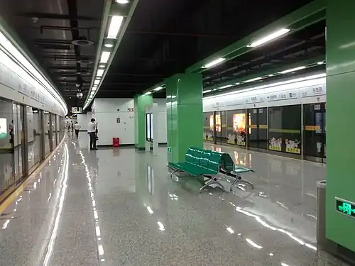 Donglu Road (simplified Chinese: 东陆路; traditional Chinese: 東陸路; pinyin: Dōnglù Lù) is a Shanghai Metro station located on Line 12 in Pudong, Shanghai. Located at the intersection of North Pudong Road and Donglu Road,[1] the station opened on 29 December 2013, as part of an initial fifteen station-long segment of Line 12 between Tiantong Road and Jinhai Road stations.[2]