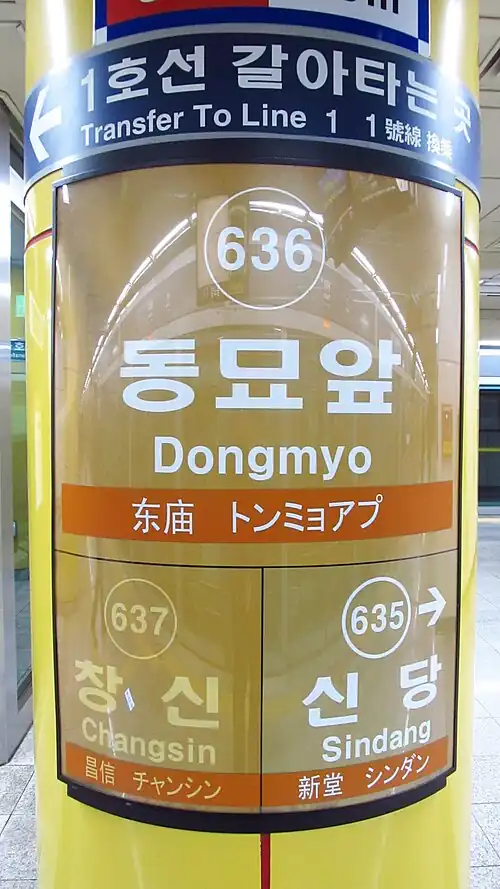 1. ^ a b c "동묘앞역" (in Korean). Doosan Encyclopedia. Retrieved 2015-09-25.