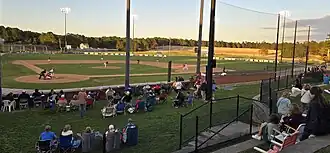 The Bourne Braves began play on the newly-constructed field in 2006, after having previously played home games at Coady School field and Massachusetts Maritime Academy's Hendy Field since the team's inception in 1988.[1] In a 2007 Braves pre-game ceremony, the new ballpark was dedicated as "Doran Park" in memory of long-time baseball fan and Sagamore resident, George Doran, Sr., and was touted as "the model for the Cape League’s future."[2] The following season, the Braves held a lighting ceremony to celebrate the park's new minor league caliber lighting system, a gift from the Doran family. Among the speakers at the 2008 event was former Bourne Brave and Boston Red Sox player Lou Merloni.[3][4]