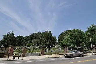 The Dorchester South Burying Ground is a historic graveyard on Dorchester Avenue in the Dorchester neighborhood of Boston, Massachusetts. Established in 1814, it is the second oldest cemetery in Dorchester, after the North Burying Ground. It is a roughly 2-acre (0.81 ha) parcel on the west side of Dorchester Avenue, north of Dorchester Lower Mills. A paved roadway provides circulation around the perimeter of the property. There is some evidence that the cemetery was formally terraced, due to the sloping terrain, but there is no evidence of curbing that might have been used for this purpose. One of the cemetery's most prominent features is a line of granite tombs along the southern boundary.[2]