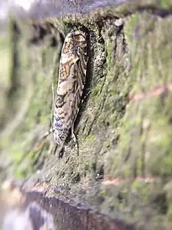 4. ^ a b c d e f g h i Hoare, Robert J. B. (2014). A photographic guide to moths & butterflies of New Zealand. Olivier Ball. Auckland. p. 26. ISBN 978-1-86966-399-5. OCLC 891672034.{{cite book}}: CS1 maint: location missing publisher (link)