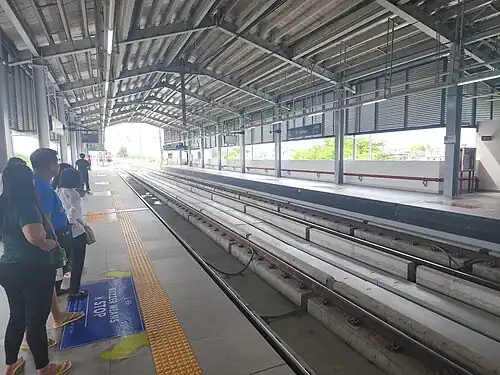 Dr. Santos station, also known as Sucat station or Dr. Santos Avenue station, is an elevated Light Rail Transit (LRT) station located on the LRT Line 1 (LRT-1) system in Parañaque. The station is part of Phase 1 of the Line 1 Cavite Extension Project, which opened to the public on November 16, 2024. It is situated in between Dr. Santos Avenue, CAVITEX–C-5 Link, and C-5 Extension, a few hundred meters behind SM City Sucat. The station is named after Dr. Santos Avenue, which in turn, is named Arcadio Santos, a former governor of Rizal who was a native of the present-day city that was part of the province. It is the current southern terminus of the line, pending the opening of the extension's Phase 2 towards Niog in Bacoor expected in 2031.[2]