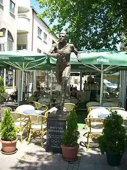 A life-size statue of Tomašević in Petrovac na Mlavi