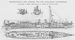 Drazki was part of a class of six torpedo boats. Her five sisters were named: Smeli (Смели, "Brave"), Hrabri (Храбри, "Valiant"), Shumni (Шумни, "Noisy"), Letyashti (Летящи, "Flying") and Strogi (Строги, "Stern"). The six boats were built at Varna in Bulgaria, using French-supplied materials and assistance. Drazki and her sisters were built between 1907 and 1908, with Drazki herself being launched in August 1907 and commissioned later that year.[1][2]