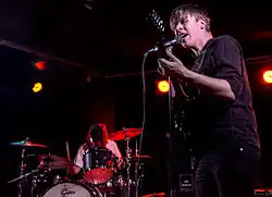 Drenge are an English three-piece rock band made up of Eoin Loveless, on guitar and vocals, his younger brother Rory, on drums, and Rob Graham on bass. The brothers grew up in Castleton, Derbyshire, where they formed the band in 2010, relocating to Sheffield in 2014. They have released two albums, Drenge in 2013 and Undertow in 2015.
