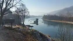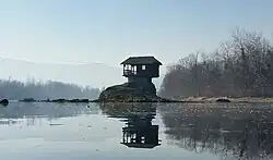 Drina river house (Serbian Cyrillic: Кућица на Дрини, Kućica na Drini) is a wooden, cabin-like house on the rock in the middle of the Drina river, near the town of Bajina Bašta in western Serbia. The original object was built in 1968 by a group of swimmers who needed a shelter. Until 2019, it was destroyed 7 times during the high water level in the river, but was rebuilt every time.[1]