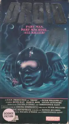 Droid is a 1988 direct to video science fiction film. Its origins are intentionally obscured on its packaging, crediting direction of the film to "British director Peter Williams" and the starring roles of Taylor to "Kevin Jean" and his ex-wife Nicola to "Raquel Rios" on the front cover and Rebecca Lynn on the back cover. The end credits reveal that these roles are played by Greg Derek and Krista Lane. The film is, in fact, an edited version of a hardcore pornographic film called Cabaret Sin (originally released July 1, 1987) marketed to a science fiction audience, and its director is actually Philip O'Toole, from a screenplay with Nacada O'Toole and Christopher Saint Booth. The film was released on VHS by Even Steven Productions and bore a stamped decal warning of sexual situations, nudity, violence, and adult language, although the film has no MPAA rating. The storyline is an imitation of Blade Runner, while one character is blatantly modeled on Anthony Daniels as C-3PO. The executive producer is Kirdy Stevens.