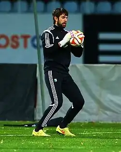On 26 June 2008, Kuciak signed a three-year contract with Romanian club FC Vaslui.[3] He joined the Polish club Legia Warsaw in August 2011, later extending his contract in August 2013 until 2016.[4] By November 2011, Kuciak had already put together the fifth-longest ever series of not conceding in the Polish league, not letting in a goal for 735 minutes.[5] In January 2013, West Ham United were reported to be in talks with him.[6] On 24 March 2014, Kuciak made his 100th appearance for Legia Warsaw in a 2–1 victory against Piast Gliwice.[7]