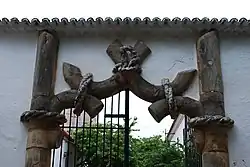 The Pavilhão da Música (Music Pavilion) is an exceptional example: it consists of a painted wood ceiling, sillar with 17th-century azulejo tile depicting figures in panchromatic tiles in yellow, blue, green and red, representing the history of Tobit (Portuguese: Tobiãs) with the coat-of-arms of the Dukes of Braganza, and signed FIAB.[1]