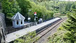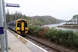 Duncraig railway station is a remote railway station by the shore of Loch Carron on the Kyle of Lochalsh Line, originally (privately) serving Duncraig Castle, a mansion near Plockton, in the Highland council area of northern Scotland. The station is 57 mileschains (91.9 km) from Dingwall, between Stromeferry and Plockton.[4] ScotRail, who manage the station, operate all services at the station.