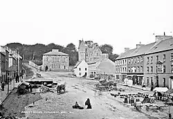 On 7 May 1954, a convoy of circus wagons crashed and overturned in Dungannon. The convoy was on its way to hold a circus in Ballygawley when a pilot lorry, which was towing three wagons, struck a chemist's shop while taking a sharp bend on Irish Street. The driver lost control of the lorry, which continued on to Market Square. The first of its wagons, carrying eight horses, four Shetland ponies and an ass, toppled over, smashing the front of two drapery shops. The second wagon, carrying three lions, crashed into the front of a hair salon and a hardware shop. Locals broke the back of the horses' wagon open, to free the animals trapped inside. A large group of locals and police physically moved the wagon containing the lions back onto the road to allow it to be removed.[10][11][12]