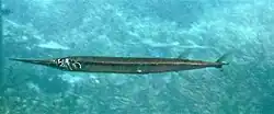 The Dussumier's halfbeak (Hyporhamphus dussumieri), also known as the slender garfish,[2] lives in reefs and shallow lagoons. It is an Indo-Pacific species which is found from the Seychelles east to the Tuamotu Islands, north to Hong Kong and Okinawa[1] and south to northern Australia.[2] They form schools which are found near the surface of lagoons and seaward reefs. The longest known specimen was 38.0 cm in length.[1] This species was described by Achille Valenciennes in 1847 with the type locality given as the Seychelles.[3] The specific name honours the French voyager and merchant Jean-Jacques Dussumier (1792–1883).[4]