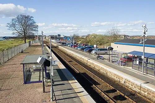 Dyce railway station is a railway station serving the suburb of Dyce, Aberdeen, Scotland. The station is managed by ScotRail and is on the Aberdeen to Inverness Line, with some trains operating on the Edinburgh to Aberdeen Line and Glasgow to Aberdeen Line also extended to call at Dyce and Inverurie. It is sited 6.25 miles (10.06 kilometres) from Aberdeen.[3]