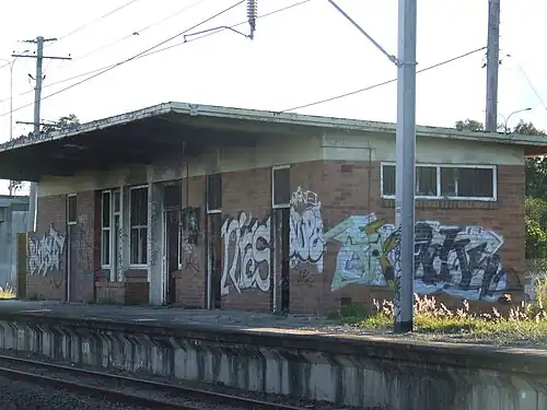 The original Eagle Farm railway station opened in 1897 just 90 metres past Airport, west of the corner of Want Street and Schneider Road, behind the Ford Motor Company of Australia site, today home of G. James glass. It closed in 1977, with the opening of Whinstanes-Doomben station.[1]