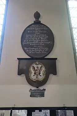 Coryndon Carpenter, died 23 April 1776, memorial in St Mary Magdalene's Church, Launceston, UK