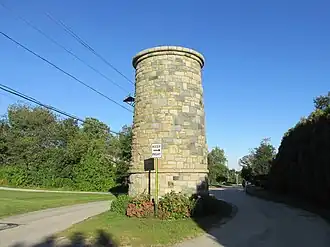 Earlscourt Historic District is a residential historic district in Narragansett, Rhode Island, United States. It is centered on a stretch of Earles Court, between Gibson Avenue and Noble Street, and includes a few properties on the adjacent Gibson Avenue and Woodward and Westminster Streets. It includes nine residential properties developed in the 1880s and 1890s, during the height of Narragansett Pier's popularity as a summer resort community. All are in the then-popular Shingle Style, and most were designed by well-known architects. The Sherry Cottages, a series of four buildings on Gibson Avenue, were all designed by McKim, Mead & White, who also designed The Towers. The other development is that on Earles Court, designed by D. J. Jardine and Constable Brothers for Edward Earle, a New York lawyer. The central focus of this development is a stone water tower which bisects the roadway.[2]