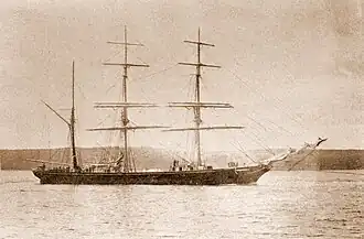 Earlshall (73405) was an iron hulled Barque registered in St. John's, Dominion of Newfoundland. It ran aground and wrecked on January 24, 1915 with no loss of life in Leeward Cove, 1.5 miles south of Motion Head, Petty Harbour-Maddox Cove, Newfoundland.[1][2]
