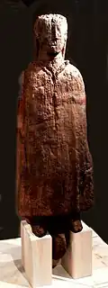 The Bronze Hand of Prêles dating from the 16th-15th century BC, is a unique find from the Tumulus culture period.[6] Described as "the earliest metal representation of a human body part ever found in Europe",[7] it may have been a ritual object, or mounted on a standard like similar metal hands known from the Iron Age,[8] or possibly a prosthesis.[9] It was found in a grave along with a bronze hair-ring, pin and dagger. The hand had a golden bracelet or cuff decorated with solar motifs.[10]