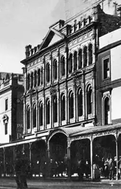 Melbourne's first theatre, the Pavilion, was constructed adjacent to the Eagle Tavern on Bourke Street in 1842.[2] The second theatre, the Queen's, was also constructed as part of a pub, however it was, and remains, the only major theatre in Melbourne's CBD built west of Elizabeth Street.[2]