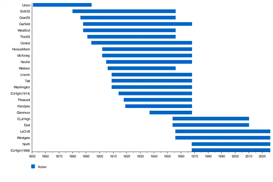 | Garfield School | 1888 | 1968 | Currently a community center |