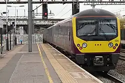 They run a mixture of Class 158s and Class 170s with 158s normally confined to the Norwich to Liverpool stretch.[33] EMR introduced Class 170s to replace the153s and 156s which have since been withdrawn,[34] and initially the 158s, which will now be kept for the foreseeable future and are planned for refurbishment along with the 170s.[35][36][37][38][39]