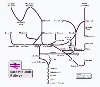 1. ^ "National Rail Enquiries - East Midlands Railway". www.nationalrail.co.uk. Retrieved 1 December 2021.