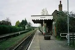 The next station, 19 miles from Norwich, is at Gunton railway station. There is no village of this name, and the station is actually situated in the parish of Thorpe Market. Gunton Station was built primarily for the convenience of Lord Suffield (a major investor in the original East Norfolk Railway Company[12]). Gunton's original station buildings are preserved but are no longer in the ownership of the railway.