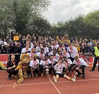 Addo-Kufuor with the Cheshunt FC squad following promotion to the National League South, 2022