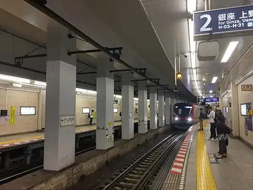 ![]() Hibiya Line platforms in 2019 | ||||||||||||||||