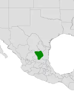 Echinocereus parkeri is found growing in the Chihuahuan Desert in the Mexican states of Nuevo León, Tamaulipas, San Luis Potosí, and Zacatecas at elevations of 1450 to 1900 meters. Plants are found growing among Mammillaria melanocentra subsp. rubrograndis and Mammillaria glassii.[4]