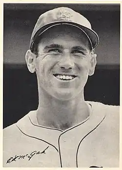 McGah attended Roosevelt High School in Oakland, and after graduating was signed by a Red Sox scout.[3] McGah first played in the Boston minor league system in 1940, with the Canton Terriers of the Class C Middle Atlantic League; his season was cut short by a knee injury.[3] In 1941 he began the season with the Oneonta Indians of the Class C Canadian–American League, then moved up to the Scranton Red Sox of the Class A Eastern League. He was still with Scranton in 1942, but again had his season cut short by knee problems.[3] Records for his early seasons are incomplete; the available records cover 125 games where he batted 147-for-458 (.321).