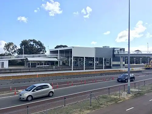 In 2010, a new canopy replaced the original.[6] In 2015, construction commenced on a $26 million multi-level car park.[7] The car park consists of three levels, with 75 CCTV cameras, 445 lights, 3 duress buttons, as well a facade screening covering half the building. The car park opened on 22 January 2017, increasing the station's total parking capacity to more than 1,450 bays.[8]