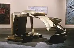 Since the 1920s, artists in English Canada had been heavily influenced by the landscape painting of the Group of Seven, the Canadian Group of Painters and the Eastern Group of Painters. In Quebec, John Goodwin Lyman founded The Contemporary Arts Society in 1939, promoting post-impressionist and fauvist art.[1] Paul-Émile Borduas and Jean-Paul Riopelle spearheaded the modernist collective known as Les Automatistes, which began having exhibitions as early as 1941. However, their artistic influence was not quickly felt in English Canada, or indeed much beyond Montreal.[2] The Painters Eleven (1953 - 1960) was founded in Toronto to promote their members' abstract works. Regina Five is the name given to five abstract painters, Kenneth Lochhead, Arthur McKay, Douglas Morton, Ted Godwin, and Ronald Bloore, who displayed their works in the 1961 National Gallery of Canada's exhibition "Five Painters from Regina". Though not an organized group per se, the name stuck with the 'members' and the artists would continue to show together.[1]