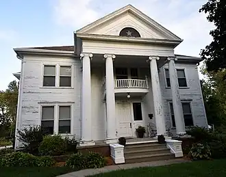 The Edmund B. Osborne House, also known as the Heritage Hill Bed and Breakfast, is a historic residence located in Red Oak, Iowa, United States. Osborne is the inventor and co-developer of the art calendar industry.[2] He had William A. Hardy build this house for him in 1897, but lived in it for only two years when he moved to New Jersey to be closer to the art center of the United States. The 2½-story frame structure features a full-height central portico with a classical pediment that is supported by paired columns in the Ionic order, and decorative entablature. The house is capped with a hip roof. It was listed on the National Register of Historic Places in 1997.[1]