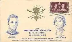 First Day Cover of King George VI showing the coronation stamp designed by Dulac