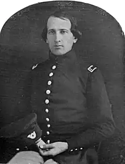 Edmund Rice Jr. was born in Waitsfield, Vermont on February 14, 1819, to Edmund Rice and Ellen (Durkee) Rice, ethnic English whose ancestors had been in New England since the 17th century. His father, also named Edmund Rice, died when he was young and his siblings began to live in Michigan Territory. He acted the role of Big Brother to younger siblings. His brother Henry left Kalamazoo for the West about the time Edmund moved to Kalamazoo, Michigan, in November 1838 to study law. Edmund was appointed registrar of the court of chancery in 1841. He was admitted to the bar association in 1842 and commenced practice in Kalamazoo, Michigan. He was appointed master in chancery in 1845. Rice enlisted to serve in the Mexican–American War in 1847 and was commissioned first lieutenant of Company A, First Regiment, Michigan Volunteers. He was the younger brother of Henry Mower Rice. He married Anna Maria Acker in Kalamazoo on November 28, 1848.[1]