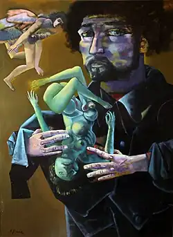 Boccia's themes are linked to the mystical, occult, and theosophical traditions of modern art including the belief in the messianic role of the artist, seen in the work of the Symbolists, as well as the pictures of Paul Gauguin and Oskar Kokoschka among others.[9] Specifically, Boccia includes numerous self-portraits, and uses examples of esoteric imagery such as the androgyne and the hermaphrodite. The works for which the artist is most well known are the multi-panel works in Expressionist style.