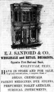 Edward Jackson Sanford (November 23, 1831 – October 27, 1902) was an American manufacturing tycoon and financier, active primarily in Knoxville, Tennessee, in the late 19th century. As president or vice president of two banks and more than a half-dozen companies, Sanford helped finance Knoxville's post-Civil War industrial boom and was involved in nearly every major industry operating in the city during this period. Companies he led during his career included Sanford, Chamberlain and Albers, Mechanics' National Bank, Knoxville Woolen Mills, and the Coal Creek Coal Mining and Manufacturing Company.[3]