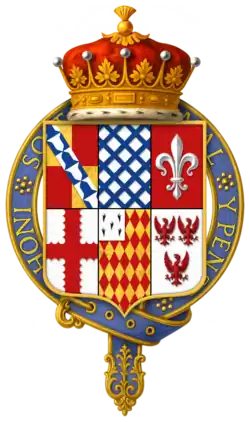 Dorset succeeded to family estates which were heavily encumbered and he was selling land to pay off his brother's debts on 26 June 1626 (money was still owing on 26 September 1650). He became joint Lord Lieutenant of Sussex and joint Lord Lieutenant of Middlesex, and held several other offices, including the mastership of Ashdown Forest, and stewardship of Great Yarmouth from 1629. He was made K.G. on 15 May 1625, and installed by proxy on 23 December. At the coronation of Charles I on 2 February 1626, he was a commissioner of claims, and carried the first sword, and he was called to the privy council on 3 August 1626. His influence at court was fully established by his appointment as lord chamberlain to Queen Henrietta Maria on 16 July 1628. As such, he was a prime mover in theatre and drama in London, and was the force behind the founding of the Salisbury Court Theatre at Salisbury Court off Fleet Street where he lived. He was a commissioner for planting Virginia in 1631 and 1634.[2]
