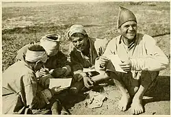 After the October mutiny the British were less severe in their response and afterwards disaffected companies were moved to rest camps.[10] Contracts for ELC labourers were standardised on 1 November 1917 at a fixed six months.[6] As ELC troops were withdrawn from France the camp at Marseilles was closed on 23 February 1918.[10] Consideration was given to raising two new ELC companies for service in Marseilles in June 1918 but issues finding volunteers in Egypt prevented this from proceeding.[10] The "voluntary" enlistment system was replaced from July 1918 by the reintroduction of the corvée system of conscription for labour, an Ottoman-era system phased out by 1889. This reduced complaints about unfair selection of men for service in the ELC by village headmen.[14][15] Resentment among former members of the ELC was one cause of the Egyptian revolution in March 1919.[16]